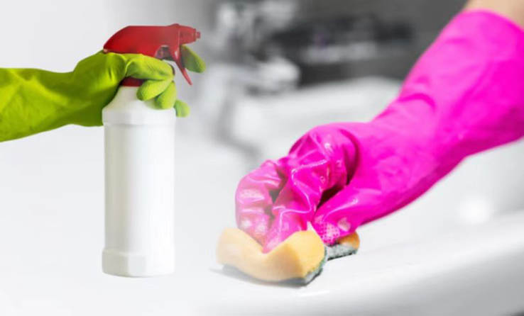 家居清潔消毒清潔步驟:先掃除垃圾或灰塵;用 1:100 的漂白水清潔抹洗;靜置 5 至 10 分鐘以發揮消毒作用;用清水抹洗;有需要時用拖把或乾抹布清除多餘水份,以保持乾爽。