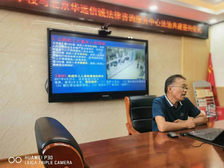 郭宏博在致辭中表示,此項活動是為了貫徹落實中央“法治中國建設”指示精神,根據國家“八五”普法規劃部署,全面落實《青少年法治教育大綱》,整合社會各界普法教育專家資源,以“法治進校園”普法活動為平臺開展校企合作,雙方將在普法教育、法治文化建設、學校師生義務法務諮詢等領域開展長期合作。