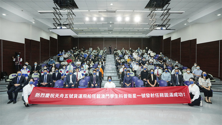 本報訊(記者大林) 11月12日上午10時3分,搭載着“澳門學生科普衛星一号”的“天舟五号”貨運飛船,在海南文昌航天發射場點火發射,發射任務取得圓滿成功。澳科大月球與行星科學國家重點實驗室在澳科大N座圖書館大樓N211室組織澳門首顆科普衛星科學任務概念征集比賽獲獎中學生、大學高層及師生觀看“天舟五号”發射的直播活動。