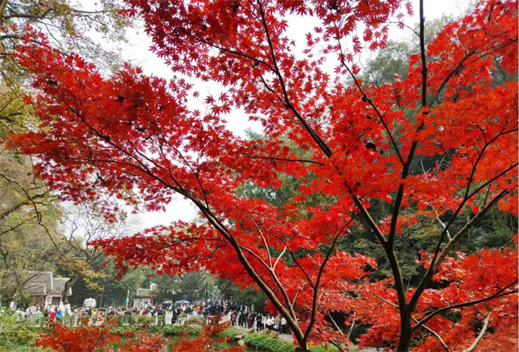 岳麓山楓葉中外聞名,也是中國「四大賞楓基地」之一。這裡的紅葉以楓香為主,有毛葉楓香、雞爪槭、日本紅楓、北美楓香、秋火焰、十月紅、挪威槭、夕陽紅、秋焰、元頁槭等品種。想看楓葉的小夥伴,可以從愛晚亭拾級而上,經放鶴亭、半山亭、麓山寺、蔡鍔墓、黃興墓、觀光長廊至雲麓宮,都可以看到不同色度的楓葉,從橙黃到赤紅,層次豐富,美不勝收。