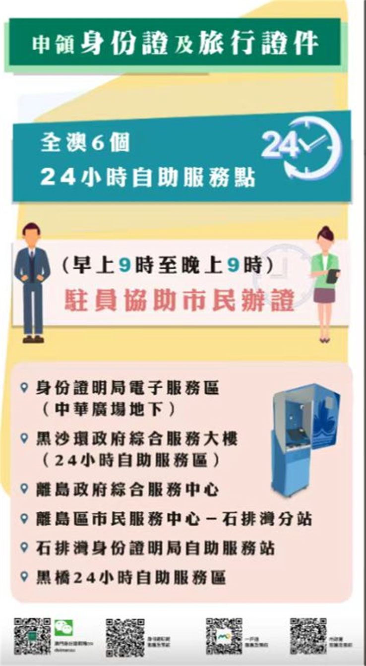 市民自今日早上九時起可透過“一户通”或身份證明局網頁預約新增加時段的服務。透過上述的安排,身份證明局表示,每週額外服務時間增加三十九小時,可處理的服務申請由三千五百個增加至七千二個,局方預計,可以滿足現階段需求,呼籲未有旅遊計劃的市民可稍後再辦理外遊所需證件。為確保有充足的人手應對新增加的服務,在行政法務範疇的市政署等部門將調配約六十人到身份證明局,協助身份證明局前線櫃檯及內部工作。同時,各區的自助服務機同步於今日起,每日早上九時至晚上九時,全澳六個廿四小時自助服務區,派專人協助市民辦證,提升自助辦證的效率。另身份證明局表示,目前市民透過預約到場辦證,約九分鐘可完成申請;延長服務後,各服務承諾時間,以及內部行政原有工作計劃將不受影響。