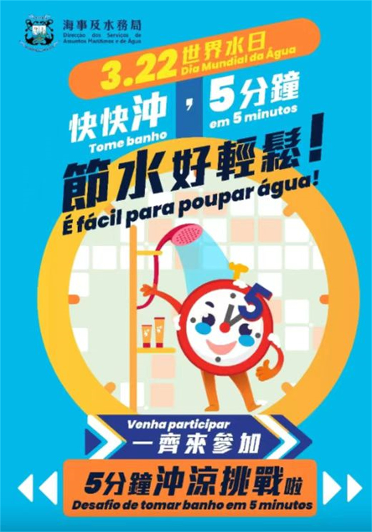 本網訊(記者 大林)海事及水務局消息,海事及水務局再度發起「五分鐘沖涼挑戰」,呼籲全澳市民和旅客以實際行動,減省洗澡用水,養成身體力行、惜水節水的好習慣,響應3月22日「世界水日」。