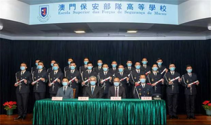 中聯辦警務聯絡部部長、解放軍駐澳部隊副司令員、警察總局局長、海關關長、澳門大學校長、教青局代局長等出席昨早的畢業典禮暨副警司就職儀式。
