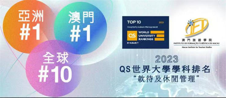 澳門旅遊學院作為一所提供款待及休閒管理學科的高等教育機構,本年度位列全球第十位,較去年排名躍升了十三位;學院的亞洲排名由2022年的第三位攀升至第一;更連續第七年在QS世界大學“款待及休閒管理”學科方面高居澳門排名榜首。