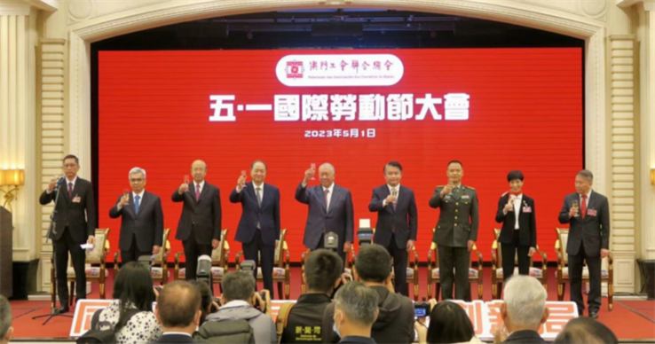 本網訊(記者 大林)工聯總會舉辦「五·一」國際勞動節大會,全國政協副主席何厚鏵,中聯辦主任鄭新聰,行政長官代表、經濟財政司司長李偉農,外交公署特派員劉顯法,駐澳部隊副司令員戴勁松等嘉賓,以及各界人士出席,場面盛大。