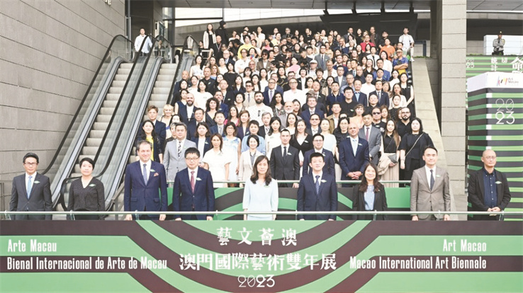 “藝文荟澳:澳門國際藝術雙年展2023”啓動儀式主禮嘉賓合照。