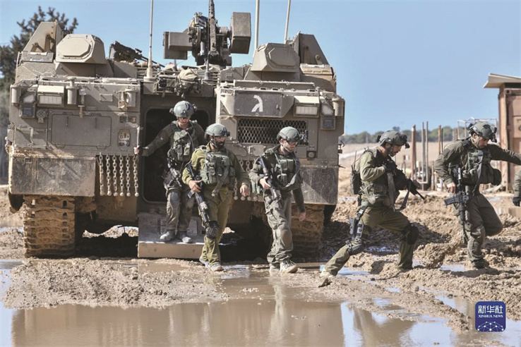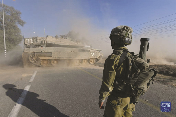 這是10月13日在加沙邊境以色列一側拍攝的集結的以軍部隊。新華社/基尼圖片社