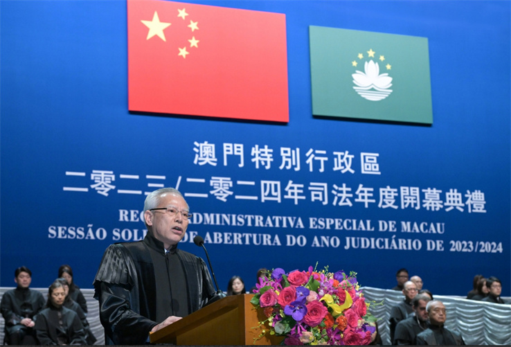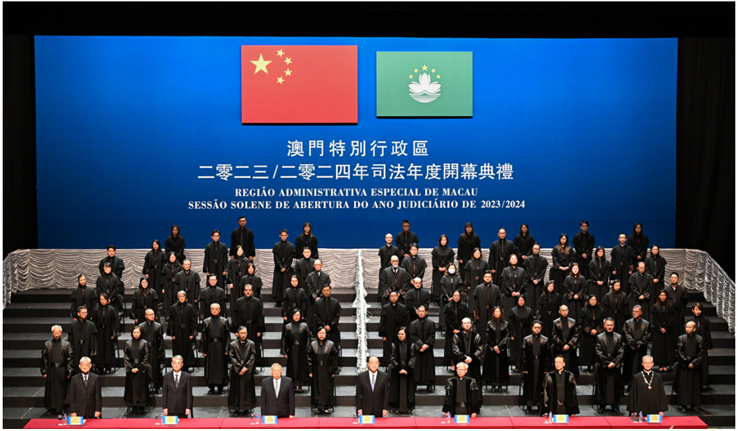 澳門特別行政區2023/2024年司法年度開幕典禮於20日下午3時30分假澳門文化中心綜合劇院舉行。典禮由行政長官賀一誠主持,立法會代主席崔世昌、終審法院院長岑浩輝、行政法務司司長張永春、檢察長葉迅生、推薦法官的獨立委員會主席劉焯華和澳門律師公會理事會主席黃顯輝列席主禮台。