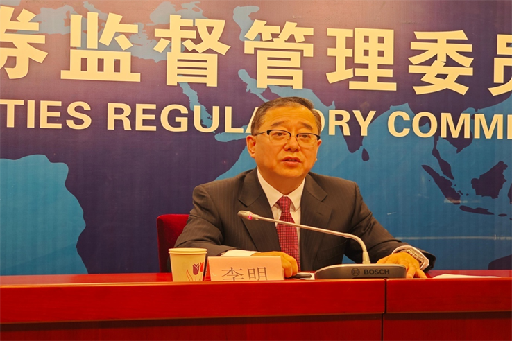 2月23日,李明在證監會例行新聞發佈會現場。 人民網 黃盛攝