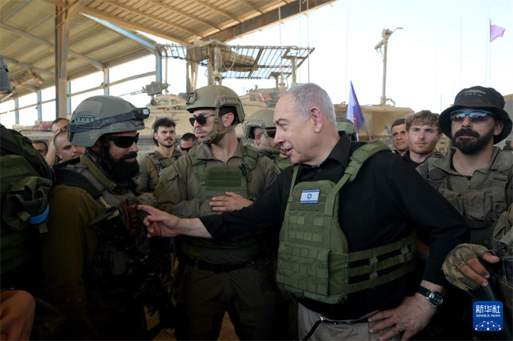 這是以色列總理內塔尼亞胡當日視察部隊的畫面。新華社發(以色列政府新聞辦公室供圖)