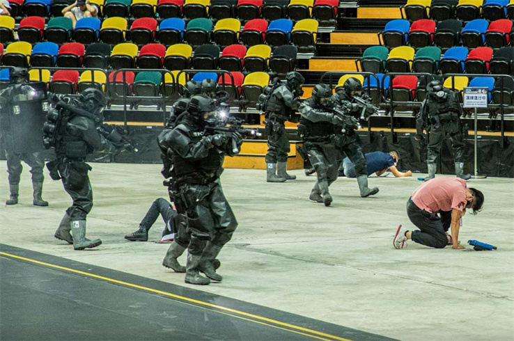 演練模擬共有7名恐怖分子,其中6名恐怖分子乘坐2輛汽車高速撞入一場大型演唱會的臨時安檢站,並用利刀砍傷多名人士。隨後6人與趕抵的警員爆發槍戰,其中1人被擊中受傷,與另1同夥駕車逃離,另外4人在拋擲一枚氯氣彈後,擄劫2名保安員進入場館,並脅持館內8000觀眾與警方進行談判。期間,臨時安檢站內數名人士因吸入有毒氣體感到不適。