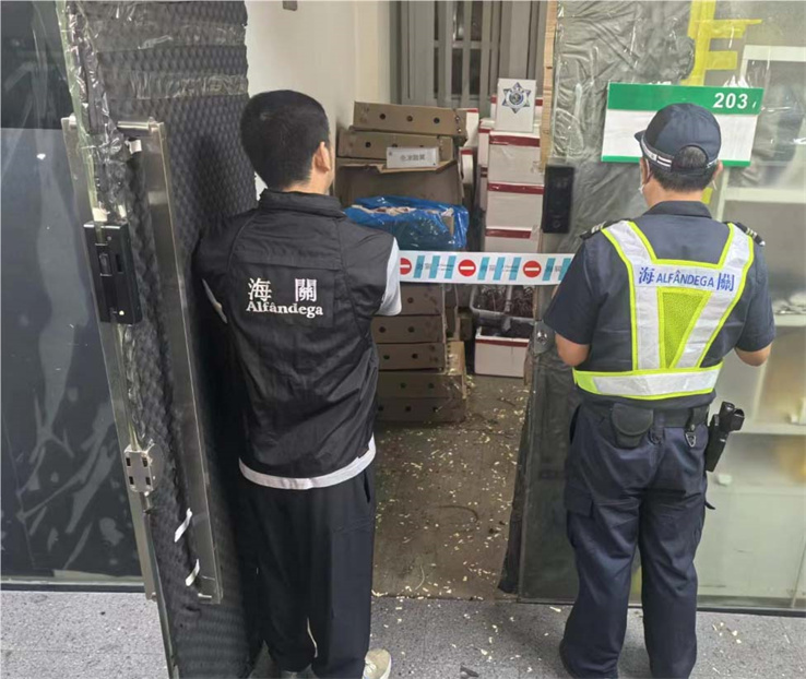 澳門海關關檢處餘展強代處長表示,海關經過近日對水貨活動趨勢分析,加強對市內各大工廈巡查。經過調查和監視,於昨日傍晚在目標單位內搜獲價值約19萬澳門元食材,並截獲一名涉案男負責人。