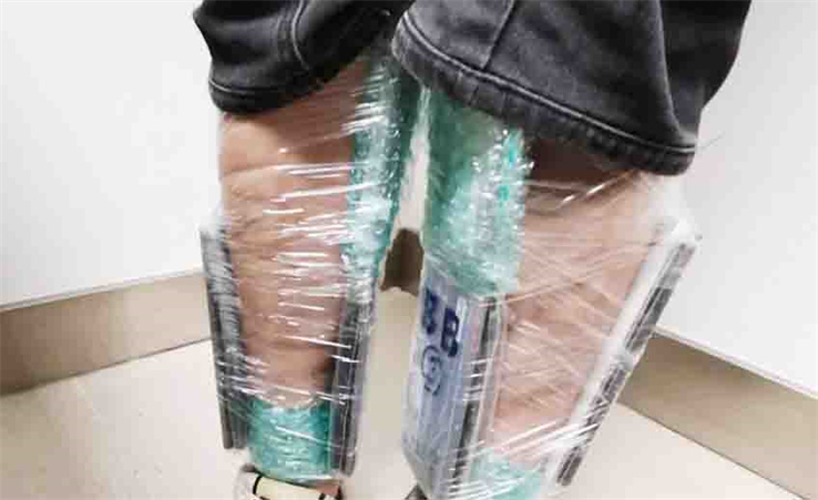 本報訊 (記者 海軒)日前,拱北海關所屬青茂海關查獲一名企圖綁藏舊手機進入內地的女遊客,關員在她背部、腹部及大腿部、小腿部發現用黑色彈力繃帶、塑膠膜綁藏的舊手機共44臺。