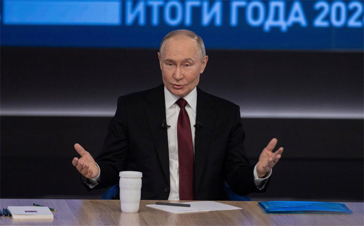 2024年12月19日,在俄羅斯首都莫斯科,俄羅斯總統普京在“年度盤點”活動上講話。新華社記者白雪騏攝