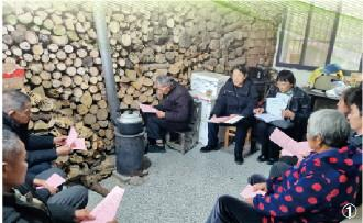 圖為2024年2月,全國政協委員、安徽省金寨縣花石鄉黨委政法委員餘靜(左四)在花石鄉大灣村朱灣組,向群眾普及用火用電、護林防火等安全知識。資料圖片