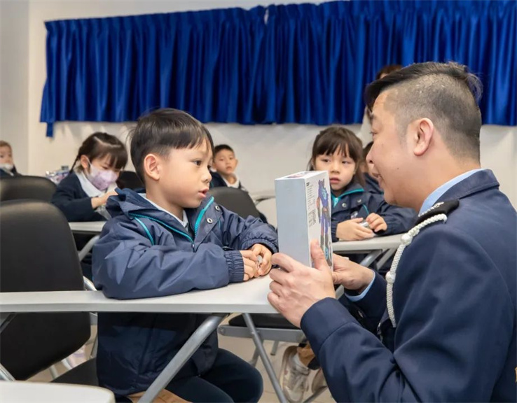 治安警察局人員以生動有趣的方式向學生們介紹了員警的種類、日常職責、制服及裝備,學生們十分投入整個環節中,透過互動活動對員警有深入的認識。