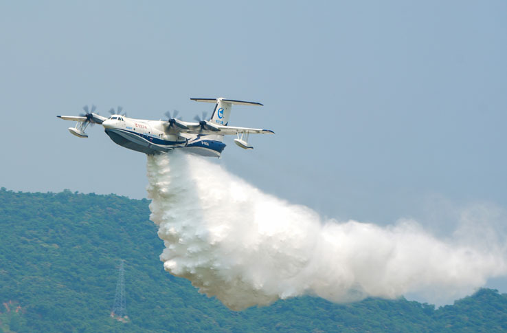 此次首秀是由4名成員組成的機組按預定科目和計畫,從珠海機場跑道起飛,在本場進行飛行投水功能演示,9噸水隨著飛機下部投汲水艙門的打開傾瀉而下,精准覆蓋投水目的地區域,投水後飛機狀態良好,回應特性正常,投水任務系統及飛機其他各系統工作穩定。