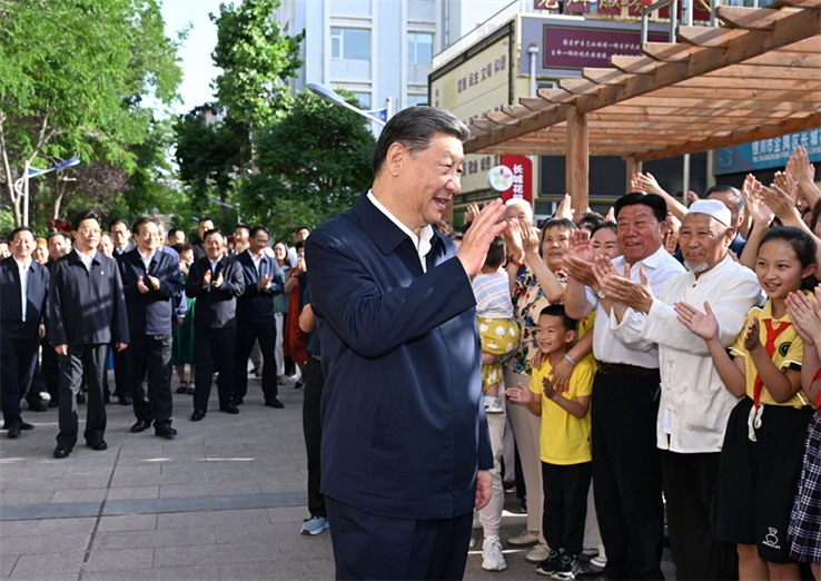 19日下午,习近平总书记来到宁夏银川市金凤区长城花园社区考察。看到这个多民族聚居的社区其乐融融,各族群众和睦相处、生活幸福,习近平十分高兴。他说,民族团结非常重要,我们五十六个民族要像石榴籽一样紧紧抱在一起。五十六个民族凝聚在一起就是中华民族共同体,中华民族是一个大家庭。我们共同奋斗,一起推进中国式现代化,实现中华民族伟大复兴!(文字记者:张晓松 朱基钗;摄影记者:鞠鹏 谢环驰 燕雁 翟健岚)