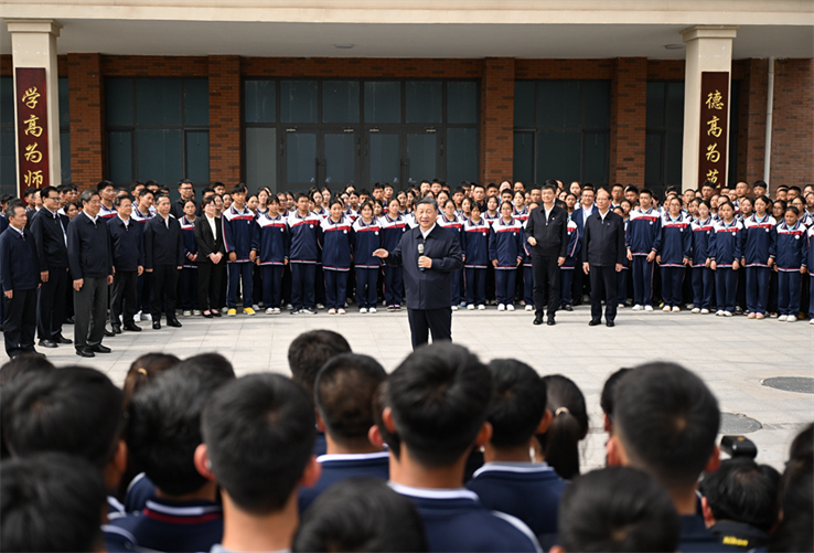 6月18日至19日,中共中央總書記、國家主席、中央軍委主席習近平在青海考察。這是18日下午,習近平在果洛西寧民族中學考察時,同師生們親切交流。新華社記者 鞠鵬 攝