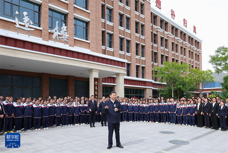 6月18日至19日,中共中央總書記、國家主席、中央軍委主席習近平在青海考察。這是18日下午,習近平在果洛西寧民族中學考察時,同師生們親切交流。新華社記者 燕雁 攝