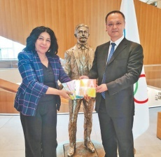 2024年11月,中國武術協會應邀派武術專家赴國際奧會教授太極拳。其間,外交學院體育對外交流研究中心主任周慶傑(右)向國際奧會首席運營官拉娜·哈達德贈送《十分鐘學會太極拳》等圖書。澤維爾·蒂西埃爾攝