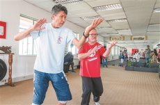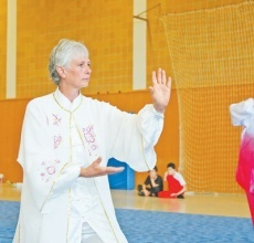 德國柏林斯潘道1860體育俱樂部的學員練習太極拳雲手。肖 晶攝
