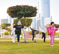 太極拳流行世界,是當代人追求健康、自然、和諧生活方式的一種體現。埃及金字塔腳下,巴西孔子課堂裏,泰國球場上……來自世界各地的太極拳愛好者,在一招一式間用心感悟古老的東方智慧,共舞太極,共用健康。(任民)