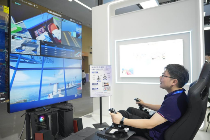 5月15日,參展商在第四屆長沙國際工程機械展覽會現場演示起重機駕駛輔助系統。新華社記者 薛宇舸 攝