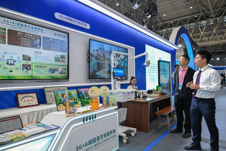 大會期間舉辦的教育數位化成果展上,北京飛象星球科技有限公司開發的人工智慧通識課程吸引不少觀眾駐足。