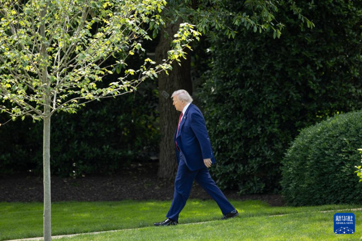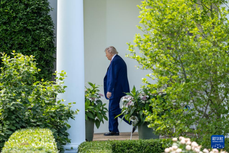 5月23日,在華盛頓白宮,美國總統特朗普走向南草坪準備登機。新華社記者 胡友松 攝