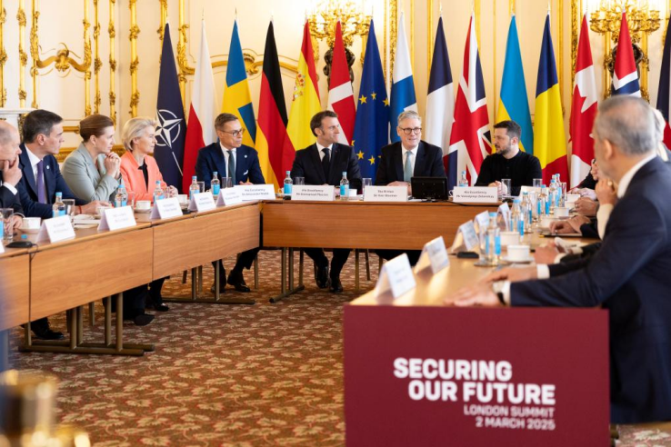 這是3月2日在英國首都倫敦拍攝的峰會現場。十餘個歐洲和歐盟國家,以及烏克蘭和加拿大的領導人3月2日在英國倫敦舉行峰會,就烏克蘭危機和歐洲防務問題進行討論。新華社發(英國首相府供圖)