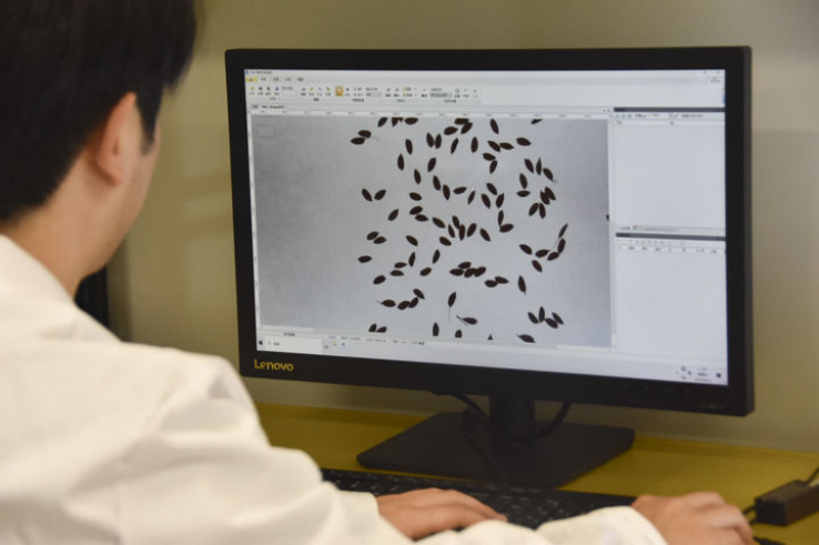 2025年4月25日,在湖南長沙,嶽麓山實驗室的研究人員在進行種子表型分析。新華社記者 白田田 攝