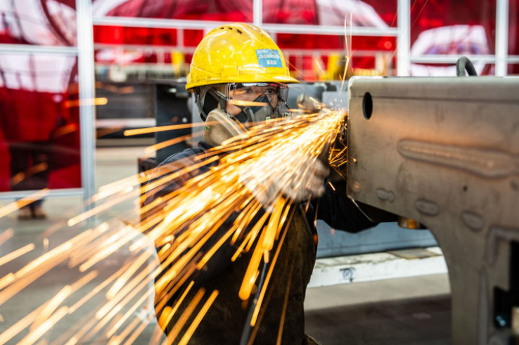 2025年2月7日,在湖南寧鄉,湖南星邦智能裝備股份有限公司工人在生產車間裏打磨零部件。新華社記者 陳思汗 攝