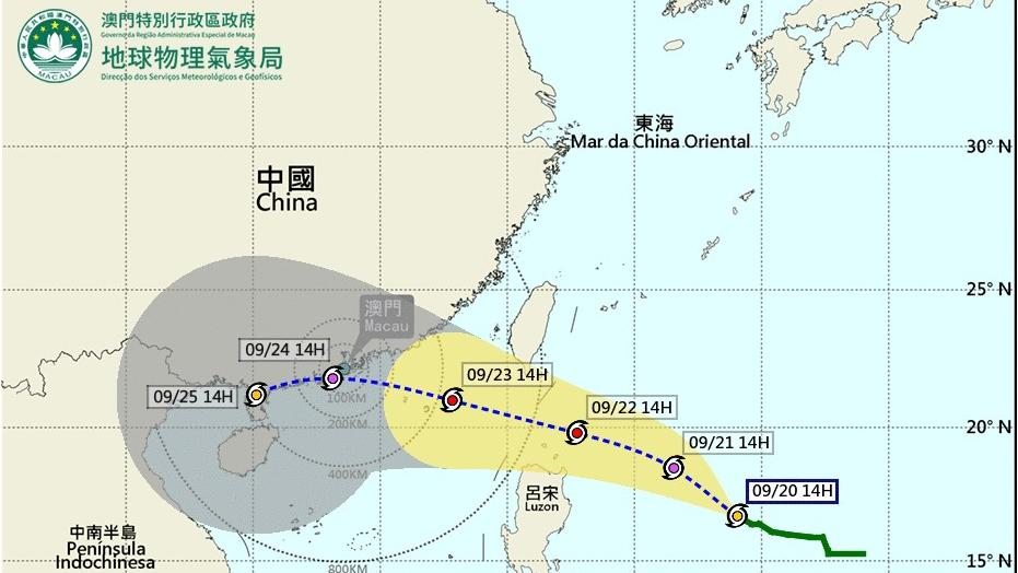 按照現時預測路徑,「樺加沙」本周初將移入南海北部,由於其環流相當廣闊,加上受東北季風共同影響,本澳本週二(9月23日)稍後開始風勢將顯著增強。