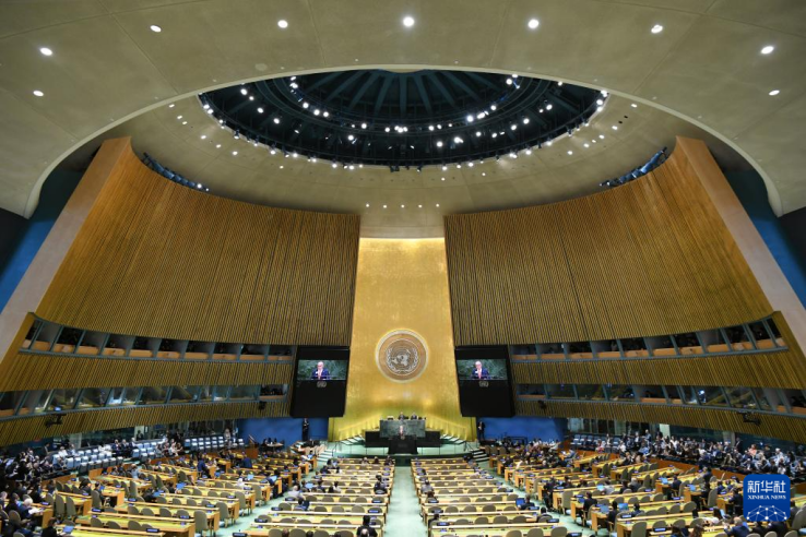 9月26日,在位于纽约的联合国总部,以色列总理内塔尼亚胡在第80届联合国大会一般性辩论发言。众多联合国会员国代表起身离席,退场抗议。新华社记者李睿摄