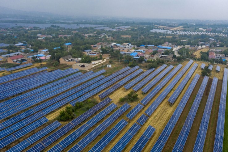 這是2025年6月25日在山西省運城市芮城縣夭上村拍攝的光伏基地(無人機照片)。新華社記者 楊晨光 攝