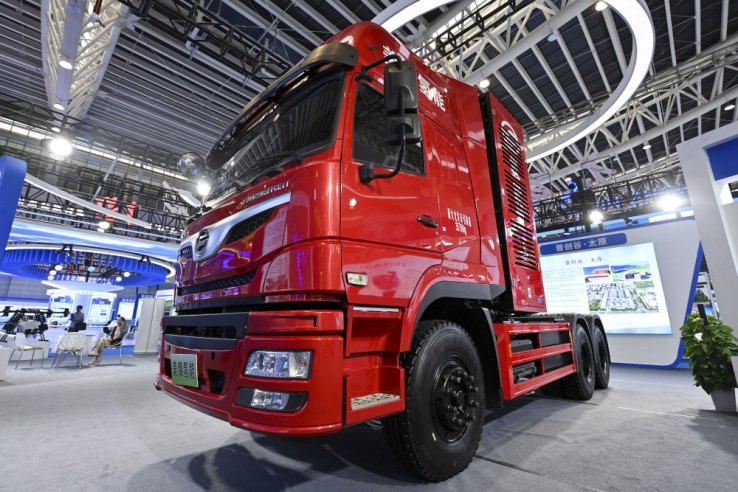 這是2024年9月11日在2024中國(太原)國際能源產業博覽會上拍攝的美錦氫能重卡。新華社記者 楊晨光 攝