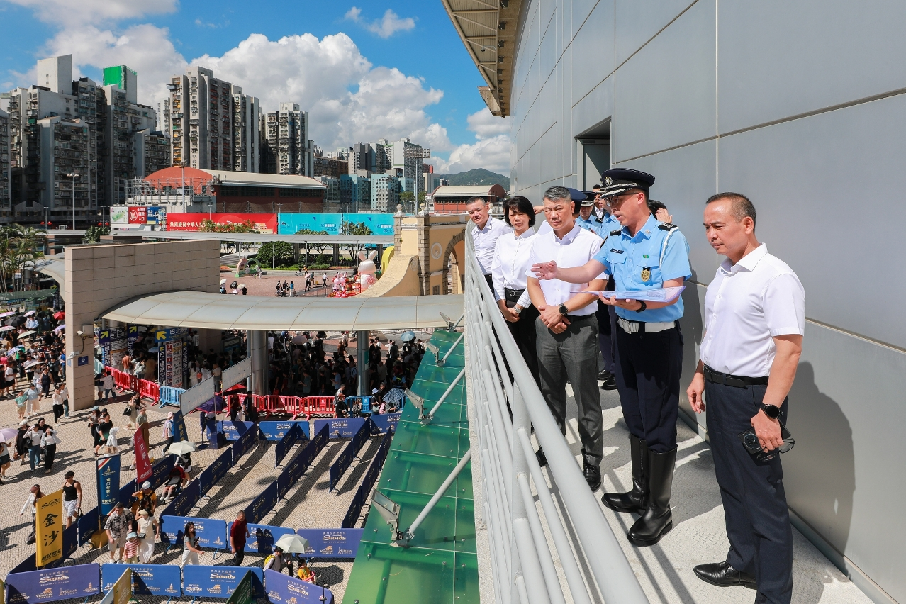 為深入瞭解各前線部門在國慶日期間的工作執行情況,3日,警察總局局長梁文昌率治安警察局局長吳錦華、保安部隊事務局局長劉運嫦、警察總局局長助理魏瑞斌、治安警察局副局長梁慶康、副局長伍素萍及相關部門主管,先後視察關閘、青茂及橫琴口岸,視察節假日人流及旅客通關情況;亦親臨澳門關前街及氹仔舊城區設置的臨時行人專用區,實地考察市面人流及相關措施的執行情況,並就各項警務部署作出指示。
