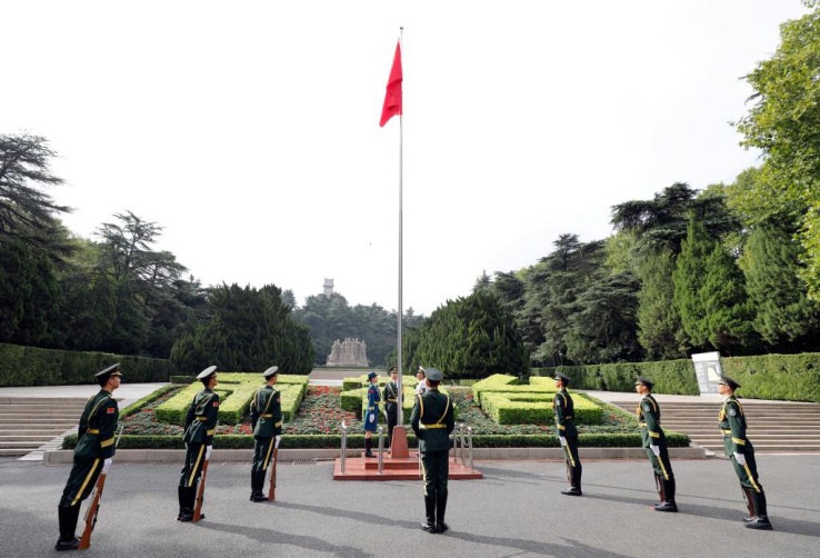 10月1日,南京雨花台烈士陵園舉行升旗儀式。