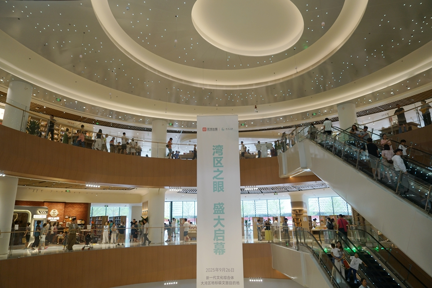 毗鄰前海冰雪世界,“灣區之眼”書城同步迎來客流高峰。這座全球最大實體書城彙聚超30萬冊精選圖書,假日期間人頭攢動。七大主題文化活動為遊客打造沉浸式文化體驗。