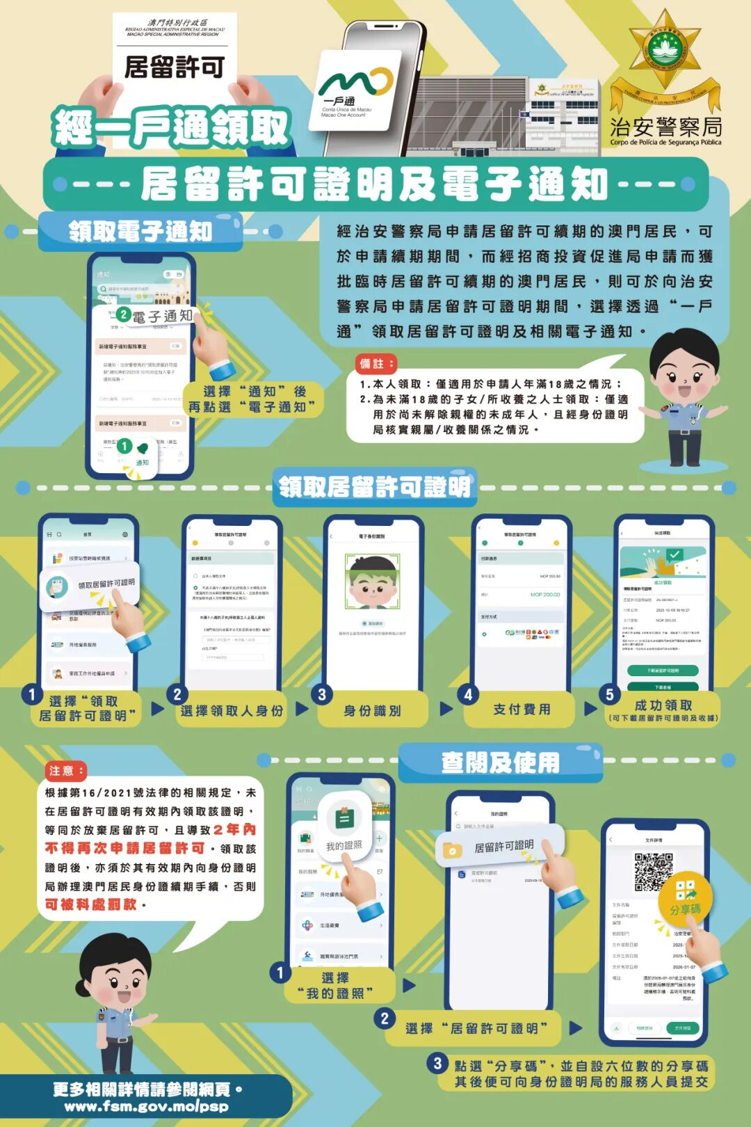 2.經招商投資促進局申請而獲批居留許可續期,並在前往治安警察局申請居留許可證明的期間,選擇在“一戶通”領取居留許可證明及相關電子通知之人士注。