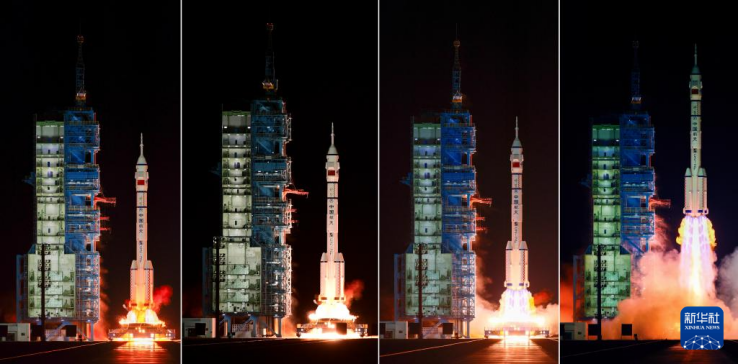 10月31日23時44分,搭載神舟二十一號載人飛船的長征二號F遙二十一運載火箭在酒泉衛星發射中心點火發射,約10分鐘後,飛船與火箭成功分離,進入預定軌道,太空人乘組狀態良好,發射取得圓滿成功。 新華社發(汪江波 攝)