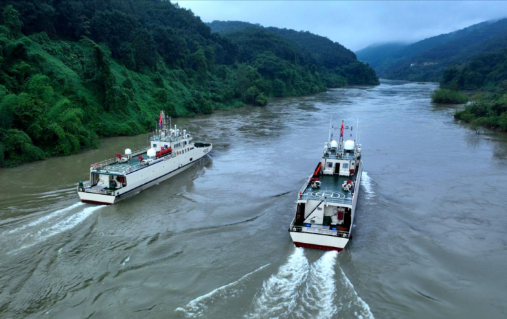 中方兩艘執法艇在湄公河上開展聯合巡邏執法行動。(雲南省公安廳水上巡邏總隊供圖)