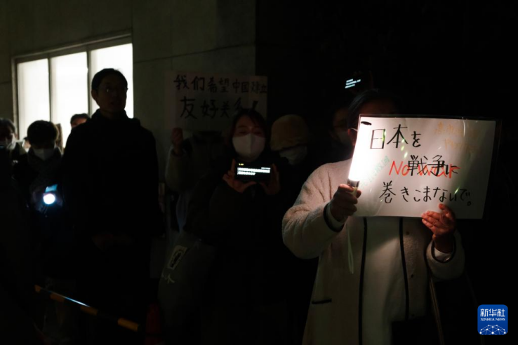這是繼11月21日和11月25日的抗議活動後,在首相官邸前舉行的又一次大規模抗議集會,有數百人參加。抗議者手持寫有“高市辭職”“不能忘記歷史,不能重蹈覆轍”等字樣的牌子,要求高市撤回涉臺錯誤言論。