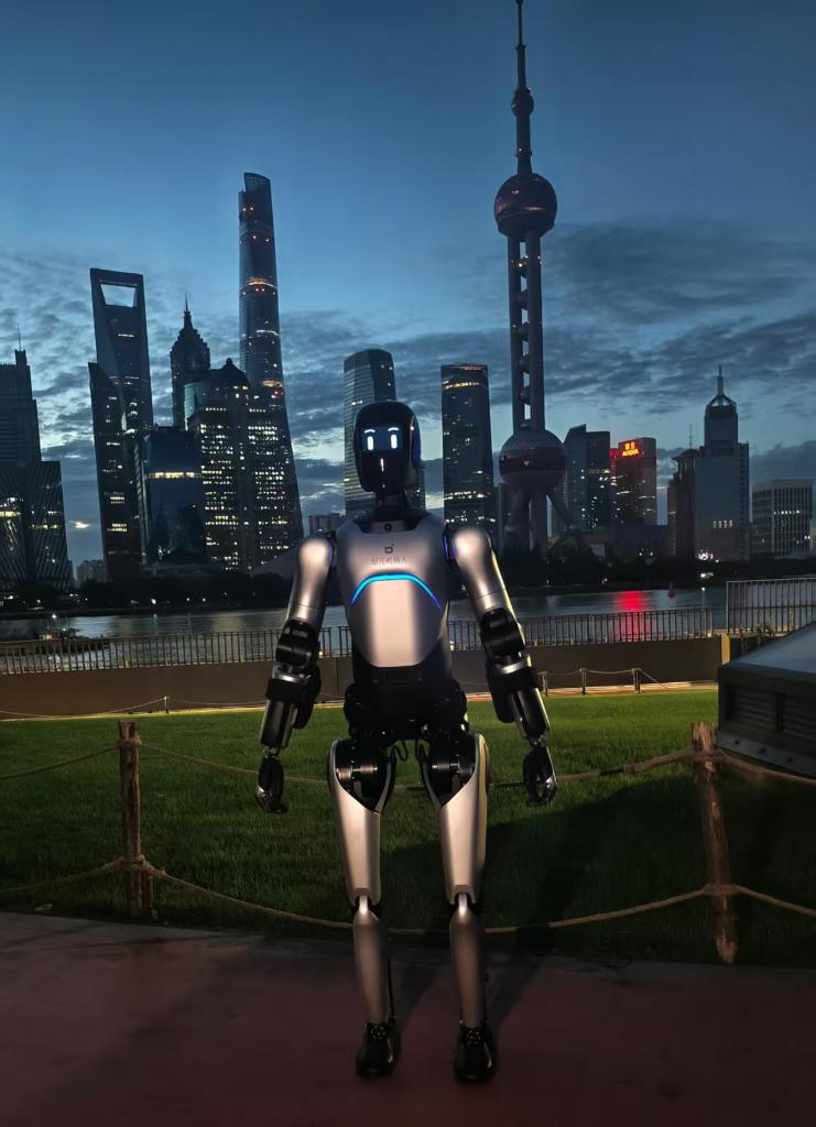 2025年11月13日清晨,“遠征A2”機器人抵達上海北外灘。新華社記者孫青 攝