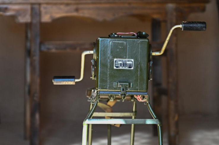 復原的延安氣象臺值班室內展出的手搖發電機。新華社記者 鄒競一 攝