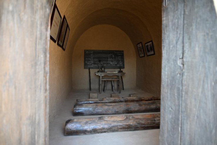 延安清涼山氣象訓練隊舊址復原的學員教室。新華社記者 鄒競一 攝